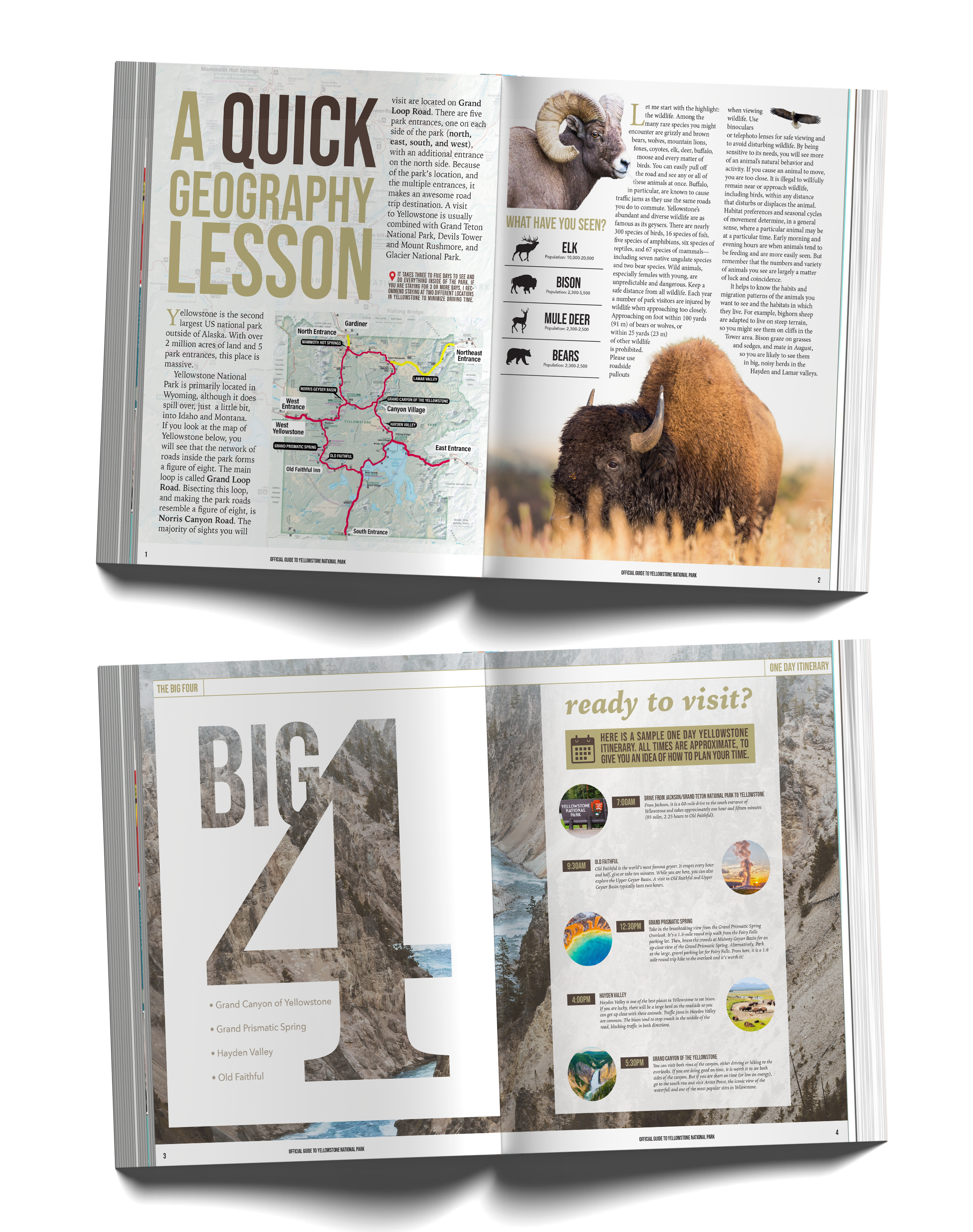 Yellowstone is one of the most iconic and sought-after vacation destinations in the U.S., known for its breathtaking landscapes and rich history. For my project, I designed a magazine spread for an official guide to the park, using creative strategies to balance informative text with bold, engaging typography. The layout captures both the beauty of Yellowstone and the practical information needed by visitors, resulting in a visually compelling and organized design.